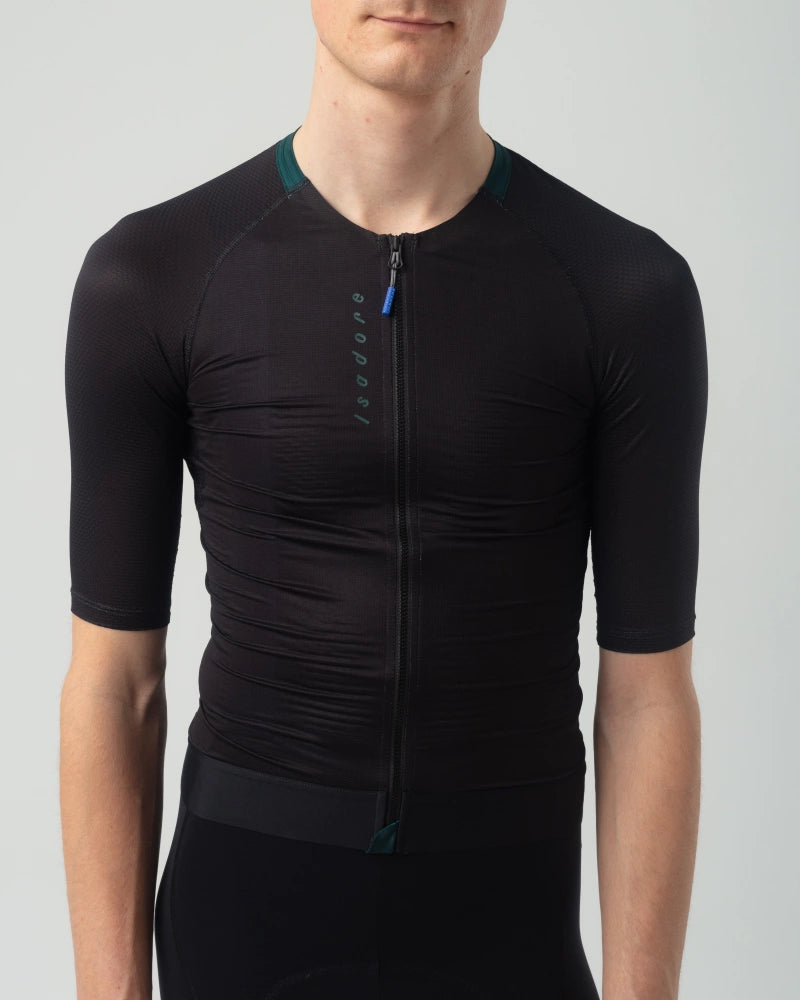 Ultralight jersey with an aerodynamic fit designed for high-tempo rides on hot summer days.